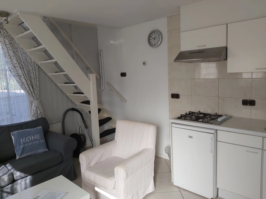 Das Wohnzimmer verfügt über eine Sitzecke mit TV und Stereoanlage. Es gibt auch einen Essbereich. Die offene Küche ist mit einer Mikrowelle ausgestattet. Das Badezimmer hat eine Dusche und eine Toilette. Im Obergeschoss befindet sich ein Schlafzimmer mit 2 Einzelbetten. Das Ferienhaus 't Jachthuisje verfügt über eine Terrasse mit Gartenmöbeln.