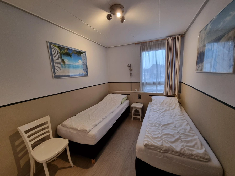 Die Wohnung Zeenevel befindet sich im ersten Stock des Komplexes. Das Wohnzimmer hat eine Sitzecke mit Fernseher und DVD-Player. Die offene Küche ist mit einer Kombi-Mikrowelle, einem Kühlschrank und einem Geschirrspüler ausgestattet. Es gibt auch einen Essbereich. Es gibt zwei Schlafzimmer mit 2 Boxspring-Einzelbetten. Das Badezimmer hat eine Badewanne mit Dusche, Waschbecken und Toilette. Diese Wohnung verfügt über einen Balkon.