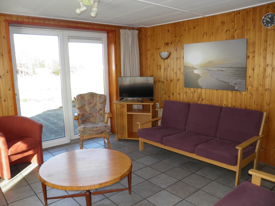 Doppelhaushälfte im Erdgeschoss - für maximal 9 Personen. Halle, sonniges Wohnzimmer mit Sitzecke und Schiebetüren zur Terrasse. Offene Küche (Kühlschrank mit Gefrierfach und Mikrowelle, Kaffeemaschine) mit Essbereich. Es gibt vier Schlafzimmer (1-2-2-4) mit Waschbecken - zwei Schlafzimmer mit 2 Einzelbetten. Ein Schlafzimmer mit 1 Einzelbett und ein Schlafzimmer mit 2 Etagenbetten. Badezimmer mit Fußbodenheizung mit Dusche, separates WC. Satellitenfernsehen, Zentralheizung und komplett gefliest. Dieses Ferienhaus verfügt über 2 Terrassen mit Gartenmöbeln, von denen 1 von einem Garten umgeben ist. Es befindet sich in der Nähe des Hunderennfeldes mit Hindernisparcours.