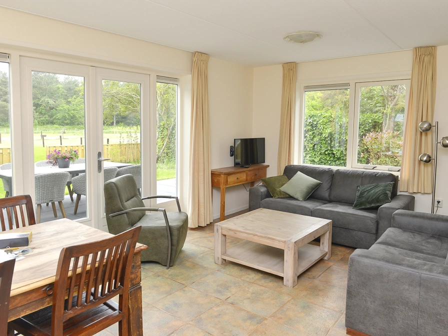 Das Wohnzimmer verfügt über einen Essbereich und eine Sitzecke mit TV / Radio. Die Küche ist mit einem Gasherd, einem Kombibackofen, einem Kühlschrank mit Gefrierfach und einem Geschirrspüler ausgestattet. Es gibt ein Schlafzimmer mit einem doppelten Boxspringbett. Das Badezimmer verfügt über eine Dusche und ein WC. Im Obergeschoss befinden sich zwei Schlafzimmer, von denen eines zwei einzelne Boxspringbetten hat. Das andere Schlafzimmer verfügt über 1 Einzel-Boxspringbett. Es gibt ein zweites Badezimmer mit Badewanne und Toilette. Dieses Ferienhaus verfügt über einen großen, vollständig umzäunten Garten mit viel Privatsphäre. Die Terrasse ist mit Gartenmöbeln ausgestattet.