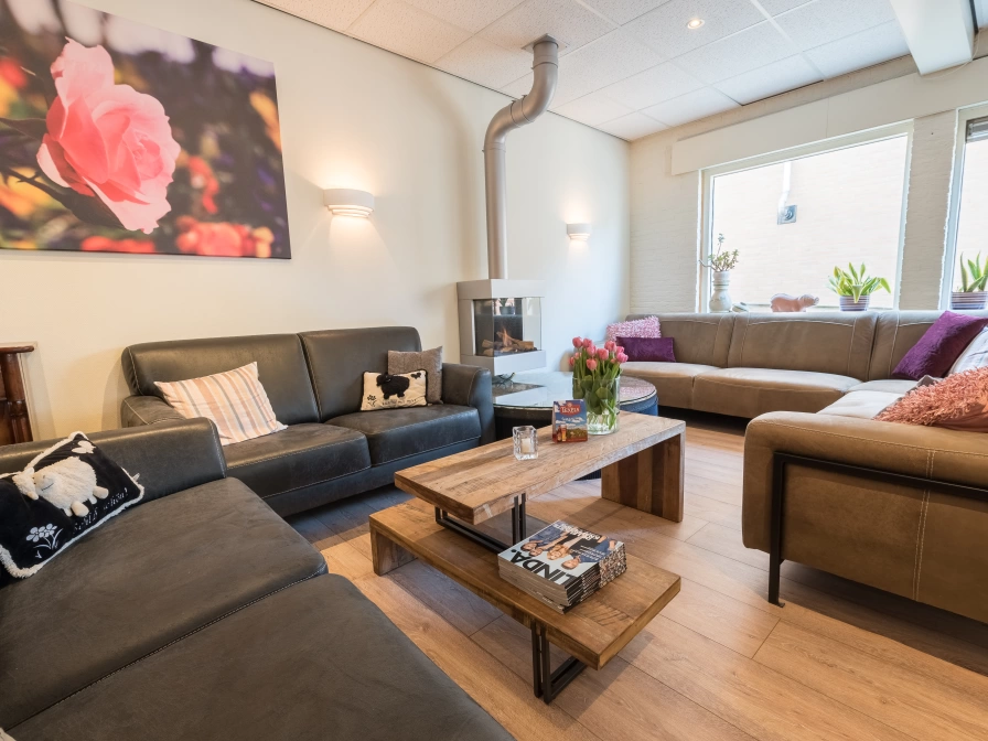 25 geräumige, hell renovierte Zimmer Nur wenige Gehminuten vom Strand, Wald und Dünen entfernt In der Nähe des Zentrums von De Koog Geräumige Lounge mit Sitzecke am Kamin und Bar Traditionelles Billard und verschiedene Spiele