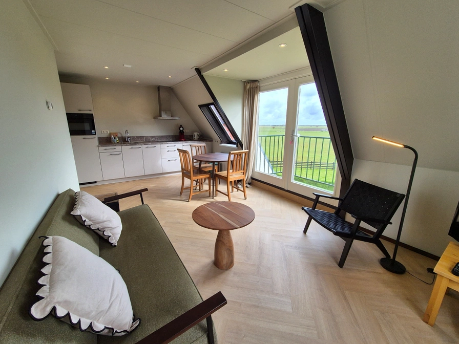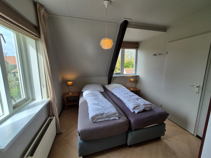 Diese Wohnung 'De Opkamer' befindet sich im 1. Stock. Das Wohnzimmer verfügt über eine Sitzecke mit TV und einen Essbereich. Die offene Küche ist mit einem Kühlschrank und einer kombinierten Mikrowelle ausgestattet. Das Schlafzimmer verfügt über 2 Einzelbetten. Das Badezimmer verfügt über eine Dusche, ein Waschbecken und eine Toilette.