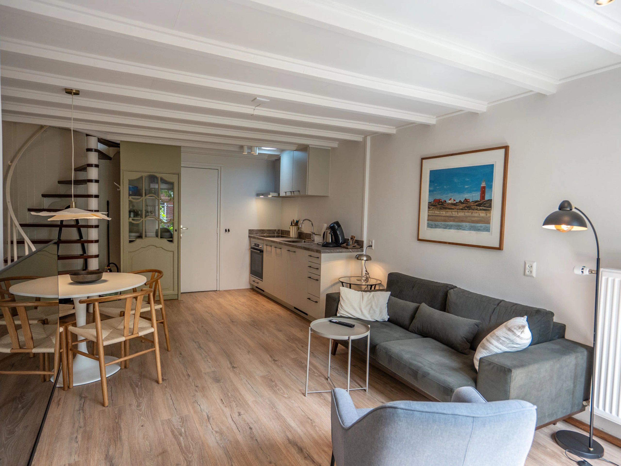 Die Wohnung Mierennest verfügt über ein Wohnzimmer mit Sitzecke, TV und Essbereich. Die offene Küche ist mit einem Kühlschrank mit Gefrierfach, einem 4-Flammen-Gasherd, einer Filterkaffeemaschine und einer Senseo-Maschine, einem Wasserkocher und einer Kombimikrowelle ausgestattet. Separate Toilette. Im ersten Stock befindet sich ein Schlafzimmer mit 2 Einzelbetten und ein zweites Schlafzimmer mit 1 Einzelbett. Das Badezimmer verfügt über eine Dusche und ein WC. Sie haben eine eigene Terrasse mit Sitzgelegenheiten.