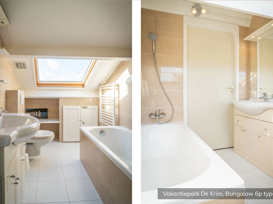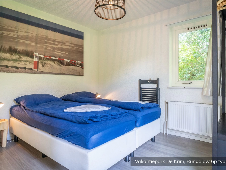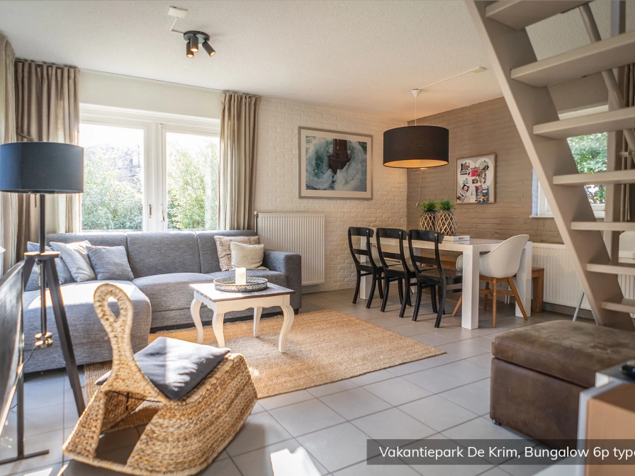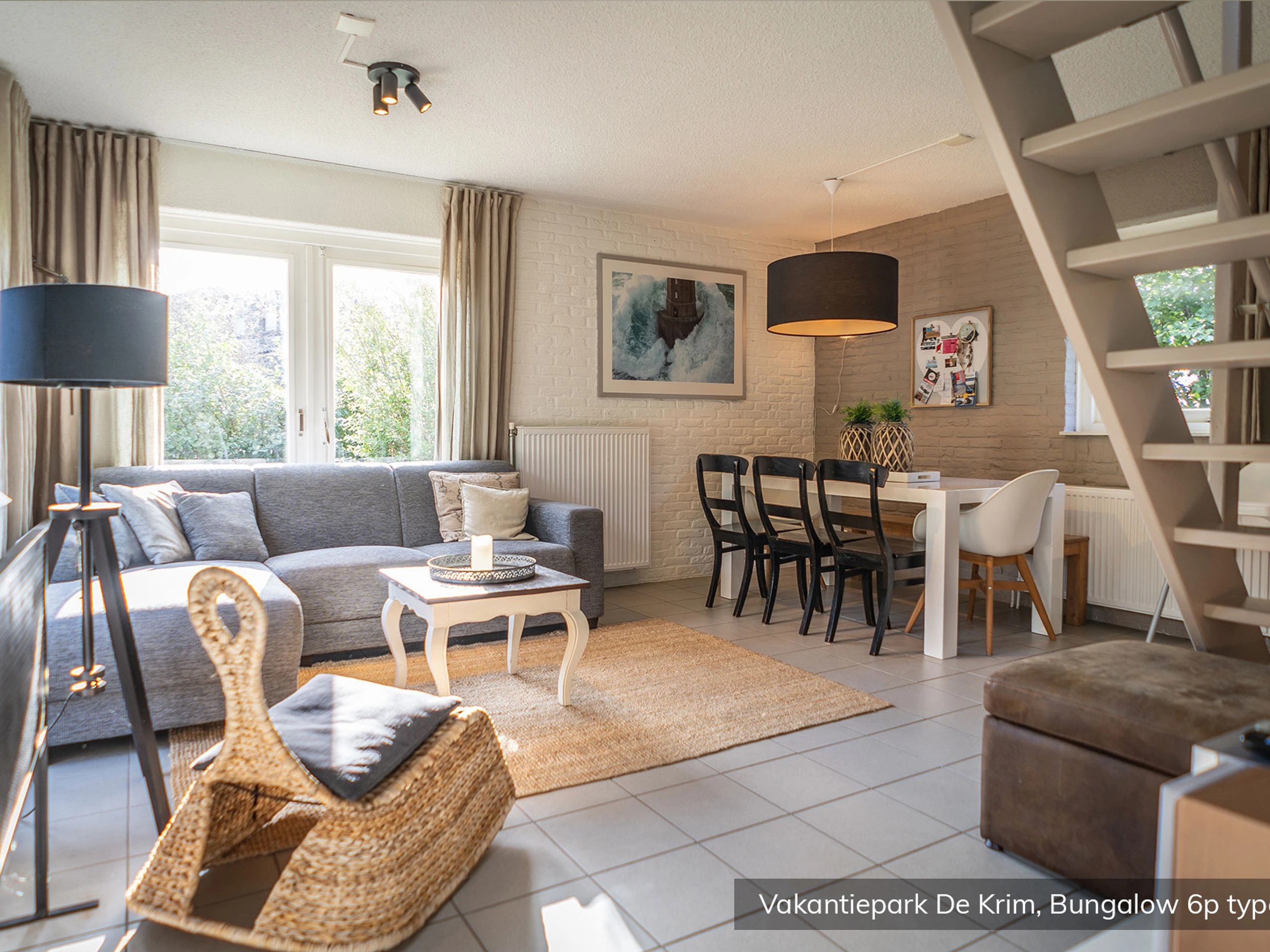 Diese Luxusbungalows vom Typ A sind über den gesamten Park verteilt und verfügen über einen großen Garten. Das Wohnzimmer verfügt über einen Essbereich und eine Sitzecke mit Kamin und Fernseher. Die (offene) Küche ist mit Geschirrspüler, Mikrowelle, Kühlschrank und Kaffeemaschine ausgestattet. Es gibt ein Schlafzimmer mit zwei Einzelbetten. Das Badezimmer verfügt über eine Dusche, ein Waschbecken und eine Toilette. Im Obergeschoss befinden sich zwei Schlafzimmer mit jeweils zwei Einzelbetten. Dieser Bungalow verfügt über einen großen Garten mit Terrasse. Gartenmöbel sind vorhanden.