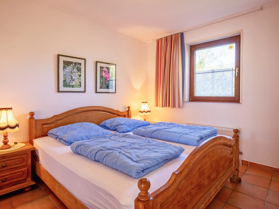 Das Wohnzimmer dieser Doppelhaushälfte verfügt über eine Sitzecke mit Holzofen und TV sowie einen Essbereich. Die offene Küche ist mit einem Kühlschrank mit Gefrierfach, Mikrowelle, Backofen und Geschirrspüler ausgestattet. Es gibt zwei Schlafzimmer mit jeweils zwei Einzelbetten. Das Badezimmer hat eine Dusche und eine Toilette. Dieser Bungalow verfügt über einen privaten Garten mit Terrasse. Gartenmöbel sind vorhanden.