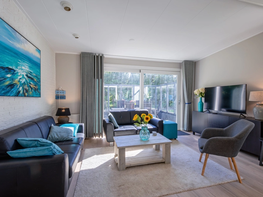 Dieses Ferienhaus liegt im ruhig gelegenen Bungalowpark Slufteroord, in der Nähe des Naturschutzgebiets De Slufter im Norden von Texel. Über De Slufter, das eine offene Verbindung zum Meer hat, erreichen Sie den ausgedehnten Nordseestrand zu Fuß in 20 Minuten. In der Nähe finden Sie auch das Naturschutzgebiet De Muy. Hier können Sie wunderschöne Spaziergänge unternehmen. Von Ihrer Urlaubsadresse sind es 6 Kilometer bis De Cocksdorp, dem nördlichsten Dorf auf Texel. Der Badeort De Koog liegt ebenfalls 6 Kilometer mit dem Fahrrad entfernt, allerdings in südlicher Richtung. Es gibt schöne Fahrradrouten durch die Dünen zu beiden Dörfern und Sie finden dort Geschäfte, Terrassen und Restaurants. In unmittelbarer Nähe finden Sie ein Restaurant (750 m) und verschiedene Sehenswürdigkeiten wie den Flughafen, das Fallschirmzentrum und die Eisfarm Labora.