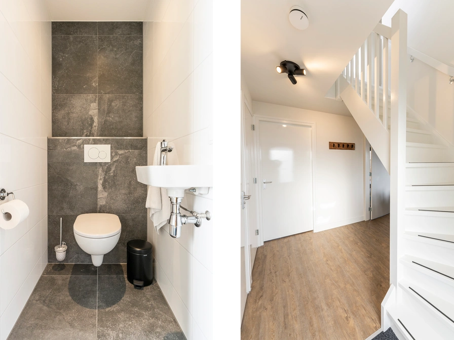 Das geräumige Wohnzimmer verfügt über eine Sitzecke und ist mit einem Sonos-Lautsprecher und Kabel-TV mit Ziggo-Sportpaket ausgestattet. Die offene Küche ist mit Quooker, Geschirrspüler, Kombi-Mikrowelle, Filterkaffeemaschine und Nespresso ausgestattet. Im Erdgeschoss gibt es ein Doppelzimmer mit eigenem Bad mit Sonnendusche, Waschbecken und Haartrockner. Im Flur gibt es eine separate Toilette. Im ersten Stock befinden sich zwei Doppelzimmer: eines mit Doppelbett und eines mit zwei Einzelbetten. Oben an der Treppe ist ein Treppenschutzgitter angebracht. Das Badezimmer verfügt über einen Whirlpool und eine ebenerdige Dusche. Im Flur gibt es eine weitere separate Toilette. Die Terrasse liegt hinter dem Haus und ist mit Gartenmöbeln ausgestattet. Der große Garten ist von Bäumen umgeben und bietet Privatsphäre.