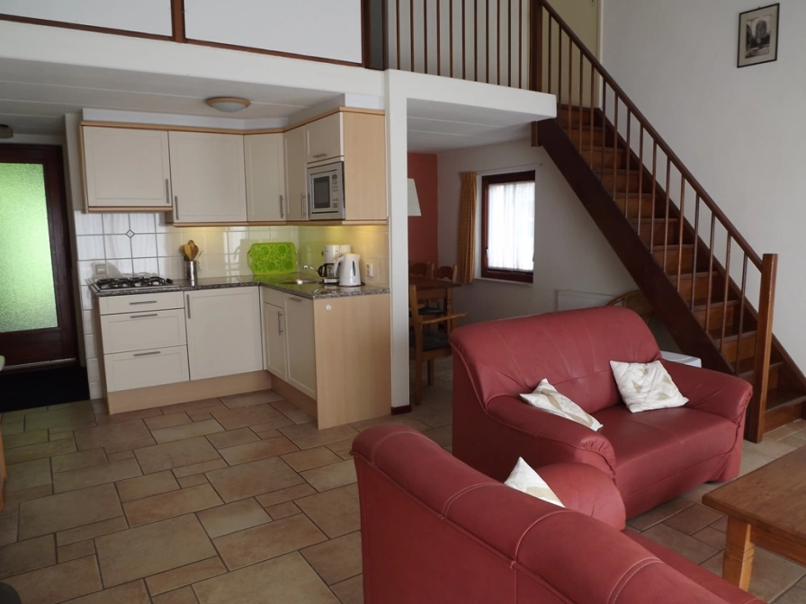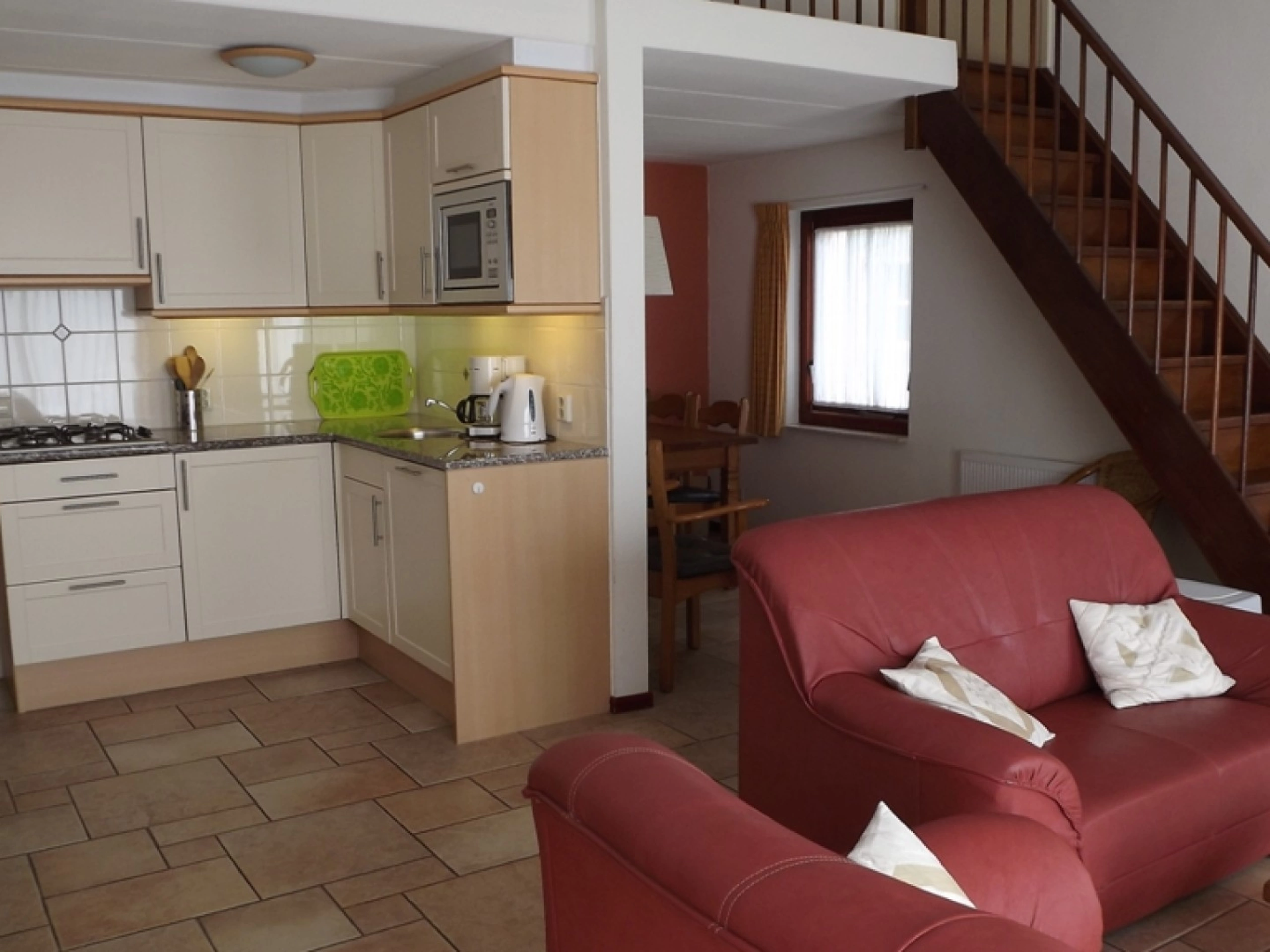 Die offene Küche dieser Doppelhaushälfte ist mit einer Mikrowelle und einem Geschirrspüler ausgestattet. Das Wohnzimmer verfügt über eine Sitzecke mit Kamin, TV und Radio / CD-Player. Es gibt auch einen Essbereich. Im Erdgeschoss befindet sich ein Badezimmer mit WC und Dusche in der Badewanne. Im Abstellraum befindet sich eine Waschmaschine. Im Obergeschoss befinden sich zwei Schlafzimmer mit jeweils 2 Einzelbetten. Dieses Ferienhaus verfügt über einen Garten mit Terrasse. Gartenmöbel sind vorhanden.