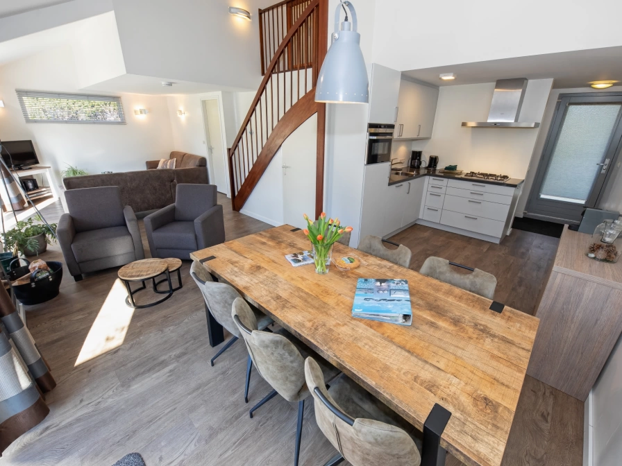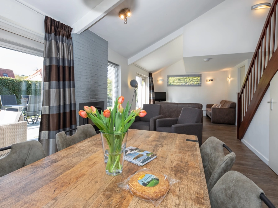 Die offene Küche dieser Doppelhaushälfte ist mit einem 4-Flammen-Gasherd, einem Kühlschrank mit Gefrierfach, einem Geschirrspüler, einem Backofen mit Mikrowelle, einem Toaster, einem Mixer, einem Nespresso, einer Filterkaffeemaschine, einem Senseo, einem Wasserkocher und einem Essbereich ausgestattet. Das Wohnzimmer hat einen Sitz neben dem Holzofen und eine Sitzecke mit Flachbildfernseher und Radio / CD-Player. Es gibt ein Schlafzimmer mit 2 Einzel-Boxspring-Betten (90 x 210) und ein eigenes Bad mit Waschbecken, begehbarer Regendusche und Sonnendusche. Es gibt eine separate Toilette in der Halle. Es gibt eine Waschmaschine und einen Trockner im Lagerraum. Im Obergeschoss befinden sich zwei Schlafzimmer mit jeweils 2 Einzel-Boxspring-Betten (90 x 200 und 80 x 200). Es gibt ein zweites Badezimmer mit ebenerdiger Dusche, Waschbecken und Toilette. Dieses Ferienhaus verfügt über einen abschließbaren Garten im Südwesten. Es gibt eine geräumige Terrasse mit Gartenmöbeln.