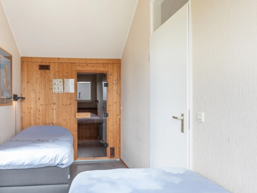 Dieses freistehende Ferienhaus De Groene Boei liegt im Beachpark Texel aan 't Stappeland. Das Wohnzimmer verfügt über eine Sitzecke mit Kamin und TV. Es gibt auch einen Essbereich. Die offene Küche ist mit einem Induktionskochfeld, einem Kühlschrank, einer Kombi-Mikrowelle, einem Geschirrspüler, einem Wasserkocher, einer Filterkaffeemaschine und Senseo ausgestattet. Es gibt ein Schlafzimmer mit 2 Einzel-Boxspringbetten. Das Badezimmer verfügt über einen Whirlpool, eine Dusche und ein Waschbecken. Es gibt eine separate Toilette. Im Abstellraum gibt es eine Waschmaschine und einen Trockner. Im obersten Stockwerk gibt es ein kleines Badezimmer mit Toilette, Waschbecken und Dusche. Es gibt zwei Schlafzimmer mit jeweils 2 Einzel-Boxspringbetten. In einem der Schlafzimmer befindet sich eine finnische Sauna. Das Ferienhaus De Groene Boei verfügt über einen großen Garten. Die Terrasse mit Windschutz liegt im Süden. Gartenmöbel sind vorhanden.