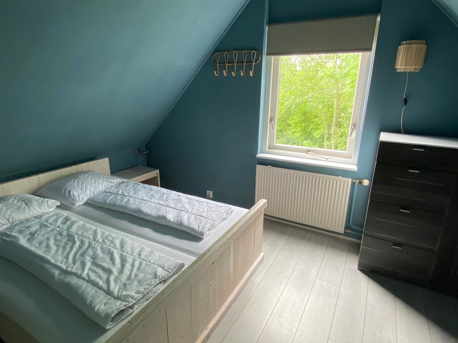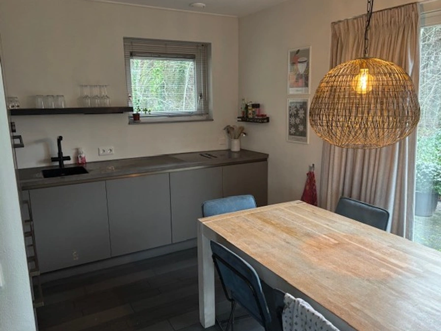 Dieses freistehende Ferienhaus liegt ruhig in einem Park am Waldrand. Das geräumige Wohnzimmer ist modern eingerichtet und verfügt über eine Sitzecke mit Elektrokamin und Smart-TV. Die offene Küche (neu 2026) mit großem Esstisch ist mit Induktionskochfeld, Kühlschrank, Gefrierschrank, Mikrowellen-Kombigerät, Geschirrspüler, Heißwasserhahn, Senseo- und Nespresso-Maschine ausgestattet. Im Erdgeschoss befindet sich ein Schlafzimmer mit einem Doppelbett (2 x 80 cm x 2 m) mit Einzelmatratzen und Einzelbettdecken sowie ein angrenzendes Badezimmer mit ebenerdiger Dusche und Doppelwaschbecken. Ein separates WC mit kleinem Waschbecken ist ebenfalls vorhanden. Im Obergeschoss befinden sich zwei geräumige Schlafzimmer: eines mit einem Doppelbett (2 x 80 cm x 2 m) mit Einzelmatratzen und Einzelbettdecken, das andere mit zwei Einzelbetten (80 cm x 2 m), einem Schreibtisch und einem Fernseher. Ein zweites Badezimmer mit Dusche, Waschbecken und WC ist ebenfalls vorhanden. Sie haben Zugang zu einem komplett umzäunten Garten mit viel Privatsphäre, zwei Terrassen mit Sonnenschutz und einer großen Rasenfläche. Gartenmöbel stehen auf beiden Terrassen bereit.