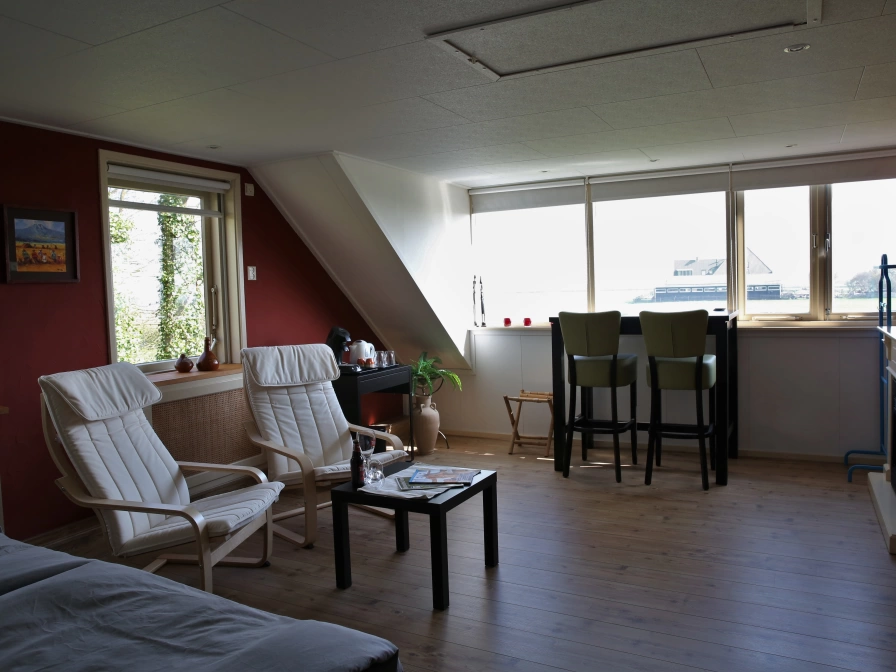 Dieses Bed & Breakfast liegt ruhig am Rande von Oosterend. Dieses malerische Dorf liegt inmitten eines landwirtschaftlichen Gebiets auf der Ostseite der Watteninsel Texel. Typisch für das Dorf sind die malerischen Straßen und engen Gassen mit schönen alten Fassaden. Mitten im historischen Dorfzentrum befindet sich die Maartenskerk. Rund um die Kirche befinden sich mehrere Geschäfte, Restaurants und ein Café. Rund um das Dorf wurden verschiedene Wanderrouten angelegt. Das "Boerenommetje" führt Sie entlang typischer texelischer Grassodenwälle und Wiesen zum alten Waddendijk (Wattendeich). Hinter dem Deich finden Sie einen kleinen Strand und das Welterbe Wattenmeer. Der "Vogelboulevard", eine Abfolge kleiner Naturschutzgebiete, in denen unzählige Vögel ruhen und Futter suchen, verläuft innerhalb der Deiche.