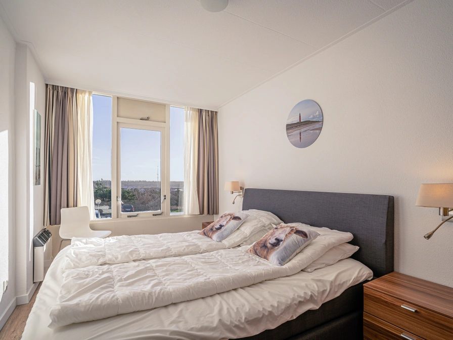 Dieses Apartment befindet sich im ersten Stock und bietet einen Blick über den Badeort De Koog. Das Wohnzimmer verfügt über eine Sitzecke mit TV und einen Essbereich mit Esstisch für 4 Personen. Die gepflegte offene Küche ist komplett ausgestattet, unter anderem mit Geschirrspüler, Kühl-Gefrierkombination, Mikrowelle und verschiedenen Kaffeemaschinen. Es gibt zwei Schlafzimmer, eines mit 1 Doppel-Boxspringbett. Das andere Schlafzimmer verfügt über 2 Einzel-Boxspringbetten. Das Badezimmer verfügt über eine große ebenerdige Dusche mit Regendusche und Waschbecken. Die Toilette befindet sich separat. Dieses Apartment verfügt über einen Ostbalkon mit Blick auf De Koog. Gartenmöbel sind vorhanden.