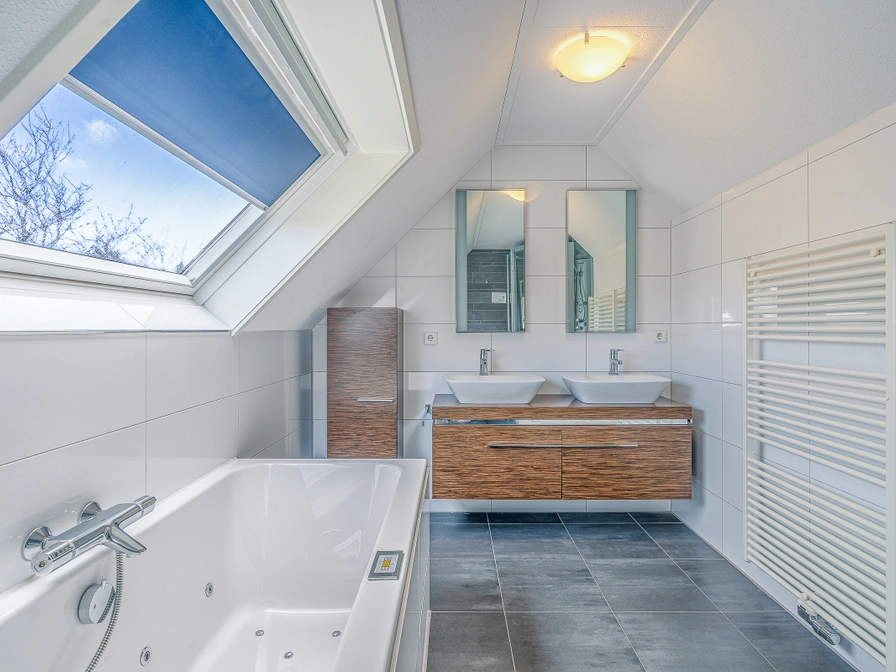 Das Wohnzimmer dieses freistehenden Ferienhauses verfügt über eine Sitzecke mit digitalem LCD-TV und Stereoanlage. Es gibt auch einen Essbereich. Die offene Küche ist mit Geschirrspüler, Kombi-Mikrowelle und Nespresso ausgestattet. Im Erdgeschoss befindet sich eine separate Toilette. Im Abstellraum befinden sich eine Waschmaschine und ein Trockner. Im Obergeschoss befinden sich zwei Schlafzimmer, eines davon mit Doppel-Boxspringbett und TV. Das andere Schlafzimmer verfügt über 2 einzelne Boxspringbetten und einen Fernseher. Das Badezimmer verfügt über einen Whirlpool, eine separate Dusche mit Doppeldampfkabine, ein Doppelwaschbecken und eine Toilette. Dieses Ferienhaus verfügt über einen großzügigen Garten am Wasser und eine Terrasse nach Südwesten. Gartenmöbel sind vorhanden. Ein Kinderbett und ein Hochstuhl gehören zur Standardausstattung. Weitere Kindermöbel sind auf Anfrage gegen Gebühr erhältlich.