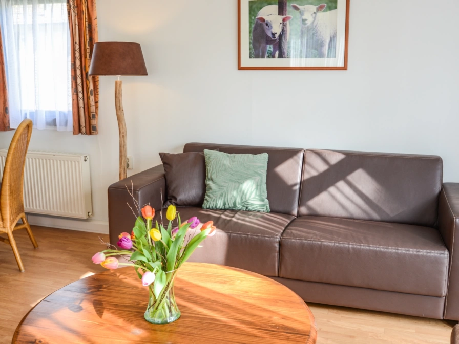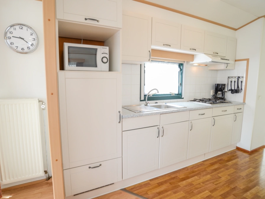 Chalet Typ D verfügt über einen Eingang, ein gemütliches Wohnzimmer mit Sitzecke, Essbereich und Smart-TV mit Apps wie Netflix. Die offene Küche ist mit Mikrowelle, Kaffeemaschine und Wasserkocher ausgestattet. Beide Schlafzimmer haben zwei Einzelbetten (80x200, mit 2 Bettdecken 140x200). Im Badezimmer finden Sie Dusche, Waschbecken und Toilette. Terrasse mit Gartenmöbeln.