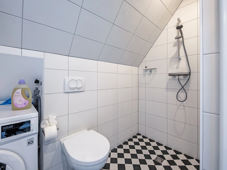 Diese Sechs-Personen-Wohnung befindet sich im ersten Stock. Die Wohnung verfügt über ein Wohnzimmer mit Sitzecke mit Flachbildfernseher und Essecke. Es gibt eine Küche mit Kühlschrank, Herd mit Backofen, Kaffeemaschine und Wasserkocher. Die Wohnung verfügt über 3 Schlafzimmer mit insgesamt 6 Einzelbetten. Das Badezimmer ist mit Dusche, WC und Waschmaschine ausgestattet.