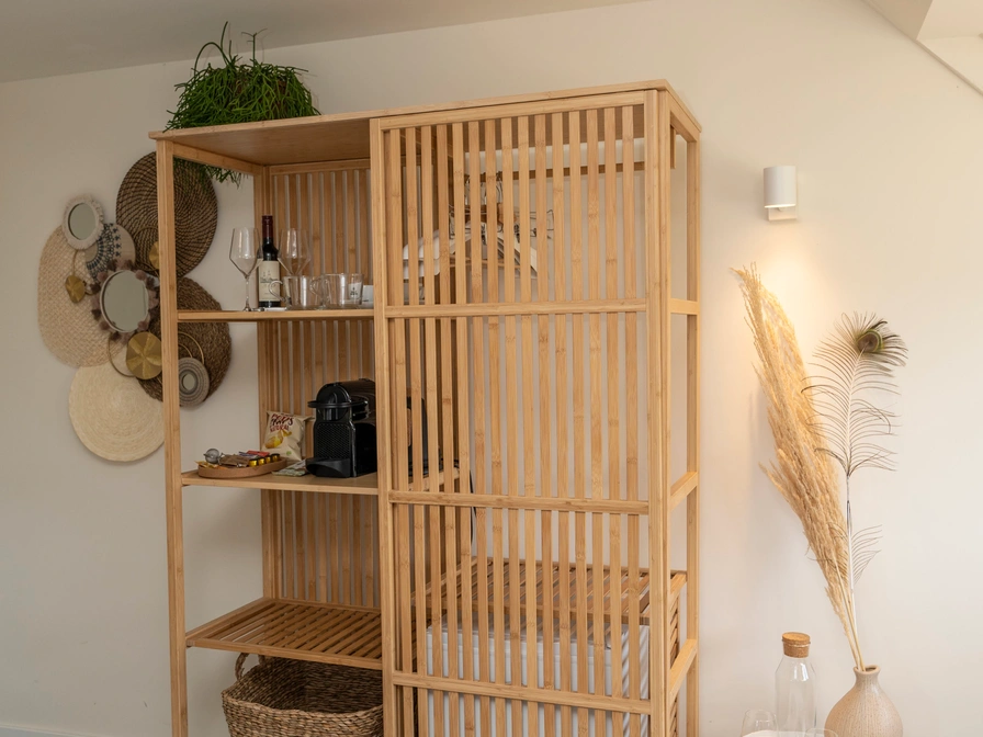 Gasthofarm op Oost ist in einem wunderschön umgebauten, authentischen Bauernhaus mit angrenzendem Algenschuppen im Weiler Oost untergebracht. Sie können bequem zum Wattenmeer laufen, von dem aus Sie einen schönen Blick auf die nach Nahrung suchenden (Zug-)Vögel und das Watt haben. Eine ideale Umgebung für Ruhesuchende und Vogelbeobachter. Das Dorf Oosterend mit einigen Restaurants und einem Supermarkt ist eine 5-minütige Fahrradfahrt entfernt. Von Osten aus können Sie schön entlang des Vogelboulevards radeln, einer Reihe von Naturschutzgebieten innerhalb der Deiche, in denen Vögel brüten und rasten. Einteilung: Die luxuriöse Garden Suite befindet sich im Erdgeschoss, auf der Süd- und Ostseite des Hofes. Das Zimmer ist geräumig mit einem Doppelbett (160 x 200 cm). Badezimmer mit ebenerdiger Dusche, Waschbecken und Toilette. Es gibt einen Smart-TV (32 Zoll), einen offenen Schrank, eine Minibar mit lokalem Sortiment, einen Wasserkocher, eine Slow-Kaffeemaschine und verschiedene Teespezialitäten. Durch Fenstertüren gelangen Sie in den Garten mit eigener Terrasse und Sitzecke. Die Details im Raum verraten die Geschichte des Hofes. Die authentischen Balken aus dem 18. Jahrhundert sind hier teilweise noch sichtbar.
