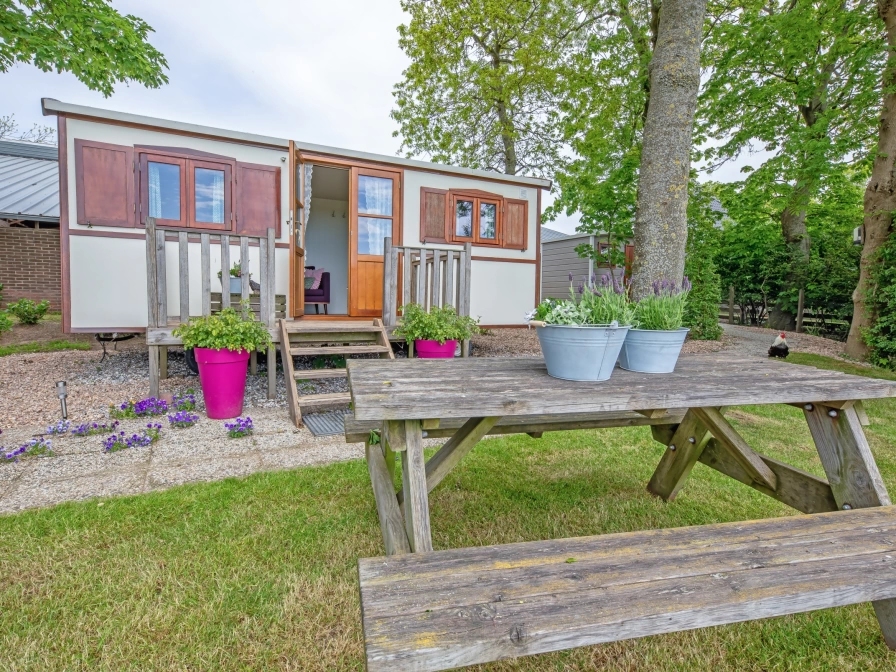 Der Zigeunerwagen befindet sich an einem privaten Ort im Garten. und bietet einen weiten Blick auf das Fischerdorf Oudeschild und die grasenden Kühe auf der Wiese. Das Wohnzimmer verfügt über einen Wohn- / Essbereich mit Tisch mit Stühlen und einem Sofa. Die Küche verfügt über einen Gasherd, Senseo, Kühlschrank und Spüle. Es gibt 2 Schrankbetten für 2 Personen. Das Badezimmer (neben dem Pipowagen) verfügt über ein Waschbecken, eine Dusche und eine Toilette. Dieser Zigeunerwagen verfügt über eine eigene Terrasse und einen Garten mit einem Picknicktisch.
