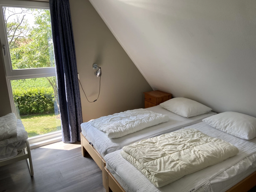 Eingang, Wohnzimmer mit Sitzecke, Essbereich und TV. Offene Küche mit Geschirrspüler, Kühlschrank mit Gefrierfach, Kombibackofen / Mikrowelle und Filterkaffeemaschine. Schlafzimmer mit 2 Einzelbetten. Badezimmer mit Dusche und Waschbecken. Separate Toilette. Im ersten Stock befinden sich zwei weitere Schlafzimmer mit jeweils 2 Einzelbetten und einem eigenen Waschbecken. Ihr freistehendes Ferienhaus verfügt über einen großen Garten mit Terrasse und Gartenmöbeln.