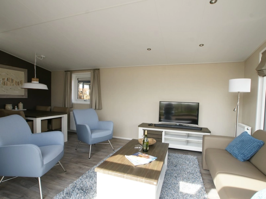 Das Chalet liegt ruhig in den Dünen des Parks. Die offene Küche ist mit einem Kühlschrank mit Gefrierfach, einer Kombimikrowelle, einem Geschirrspüler, einem Toaster und einer Kaffeemaschine ausgestattet. Das Wohnzimmer verfügt über einen Essbereich und eine Sitzecke mit LCD-TV. Es gibt zwei Schlafzimmer mit jeweils zwei Boxspringbetten. Das Badezimmer verfügt über eine Dusche, ein Waschbecken und eine Toilette. Das Chalet verfügt über eine Terrasse. Gartenmöbel sind vorhanden.