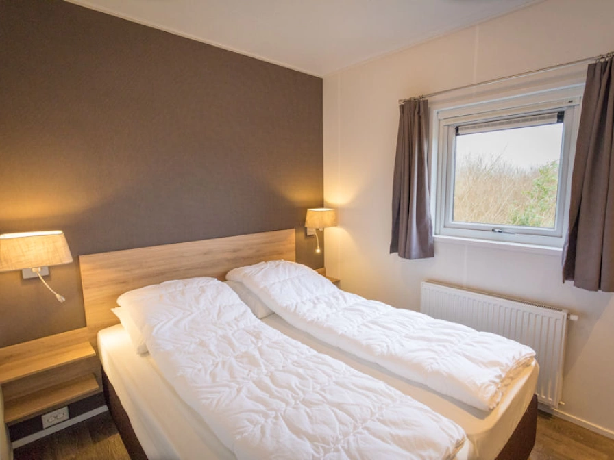 Das Chalet liegt ruhig in den Dünen des Parks. Die offene Küche ist mit einem Kühlschrank mit Gefrierfach, einer Kombimikrowelle, einem Geschirrspüler, einem Toaster und einer Kaffeemaschine ausgestattet. Das Wohnzimmer verfügt über einen Essbereich und eine Sitzecke mit LCD-TV. Es gibt zwei Schlafzimmer mit jeweils zwei Boxspringbetten. Das Badezimmer verfügt über eine Dusche, ein Waschbecken und eine Toilette. Das Chalet verfügt über eine Terrasse. Gartenmöbel sind vorhanden.