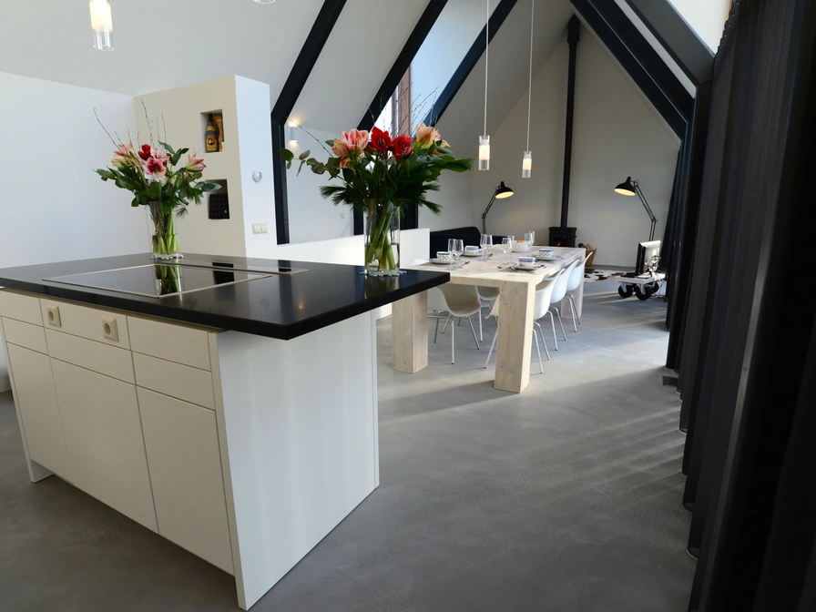 Dieses freistehende, luxuriöse und attraktive Ferienhaus Ruimte op Texel ist von Ackerland umgeben. Das große Wohnzimmer hat eine super hohe Decke und große Fenster über die gesamte Länge des Hauses (10 Meter). Es gibt ein schönes Loungesofa mit einem gemütlichen Holzofen, Smart-TV, Apple-TV und DVD-Player. Sie können bequem mit einer großen Gruppe am großen hölzernen Esstisch sitzen. Die offene Küche besteht aus Afzelia-Holz und ist mit einem Kühlschrank mit Gefrierfach, einem Kombibackofen, einem Geschirrspüler und einer Nespresso-Maschine ausgestattet. Die Küche ist mit einer Kochinsel mit 6-Flammen-Induktionskochfeld und High-Tech-Absaugsystem ausgestattet. Schön und luxuriös: Zwei Schlafzimmer (mit extra langen Betten) haben jeweils ein eigenes Bad und befinden sich im Untergeschoss, das über eine Holztreppe erreichbar ist. Eines der Badezimmer verfügt über eine freistehende Badewanne sowie eine zusätzliche Toilette, das andere über eine ebenerdige Dusche. Beide haben zwei Waschbecken und es gibt auch eine separate Toilette. Der Waschraum verfügt über eine Waschmaschine und einen Trockner. Dieses Ferienhaus verfügt über eine riesige Terrasse von 75 m2 mit einem großen Esstisch, schönen Adirondacks Sonnenliegen und einem großen Sonnenschirm. In und um das Haus gibt es schöne, meist texelische Kunst.