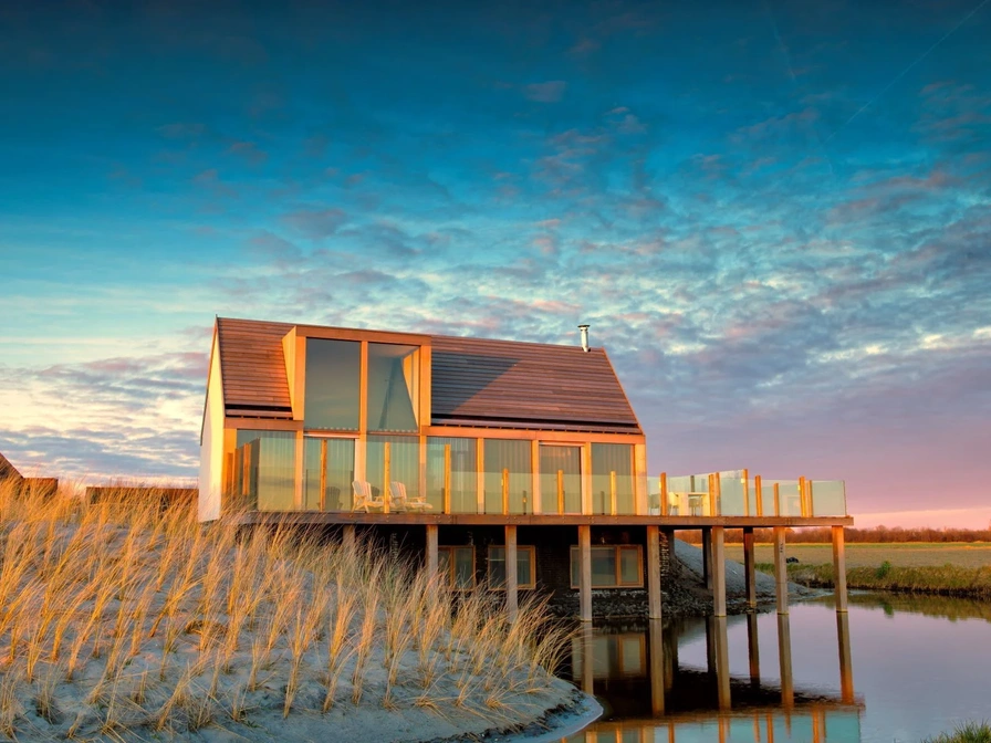 Luxus-Einfamilienhäuser Unter Architektur gebaut Einzigartige Aussicht über Polder mit Vögeln und Schafen Naturschutzgebiet Prins Hendrik Sanddeich zu Fuß erreichbar Künstlerdorf Den Hoorn mit Supermarkt 3,5 km Nordseestrand 20 Minuten mit dem Fahrrad