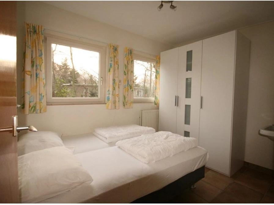 Das Wohnzimmer dieses freistehenden Bungalows verfügt über eine Sitzecke mit Kabel-TV, Radio, DVD-Player und einen Essbereich. Die offene Küche ist mit Kühlschrank mit Gefrierfach, Kaffeefiltermaschine, Senseo, Kombibackofen und Spülmaschine ausgestattet. Es gibt insgesamt drei Schlafzimmer. Zwei Schlafzimmer 2 Einzelbetten und das 3. Schlafzimmer ein Etagenbett. Das Badezimmer verfügt über eine Dusche und ein WC. Dieser Bungalow verfügt über einen Garten mit Terrasse. Gartenmöbel sind vorhanden.