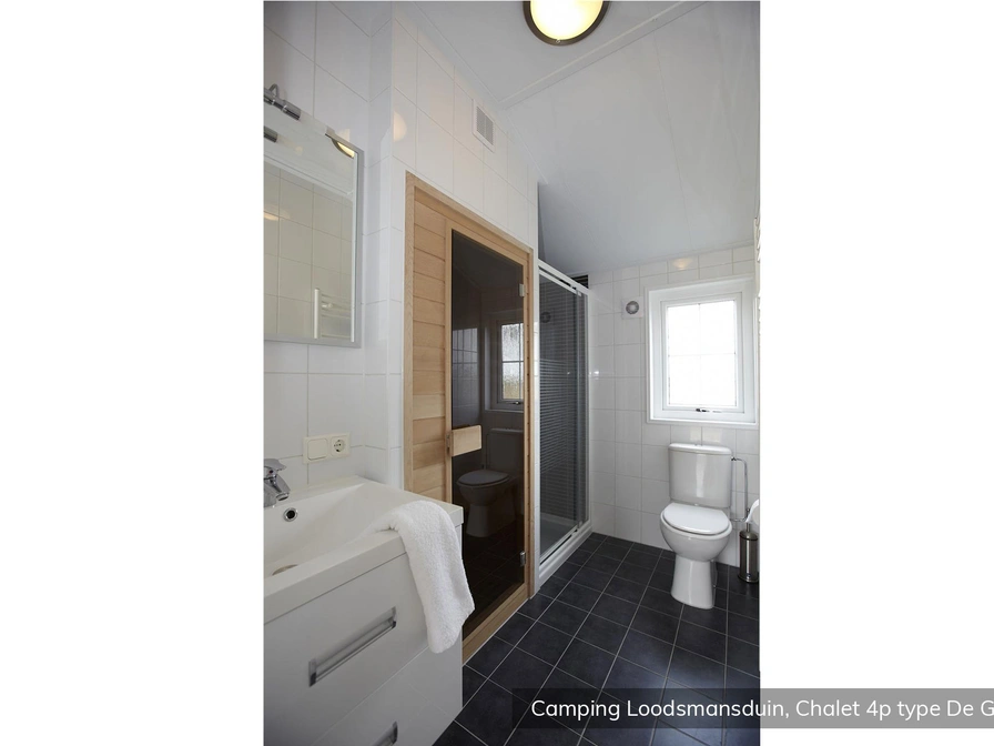 Dieses freistehende Chalet befindet sich an einem wunderschönen Ort. Das Wohnzimmer verfügt über eine Sitzecke mit TV, Radio und DVD-Player. Es gibt auch einen Essbereich. Die Küche ist mit einem Vierbrenner, einem Kühlschrank, einem Geschirrspüler und einer Kombimikrowelle ausgestattet. Es gibt zwei Schlafzimmer mit jeweils zwei Einzelbetten. Das Badezimmer verfügt über eine Dusche, ein Waschbecken, eine Toilette und eine Infrarotsauna. Sie haben eine schöne Veranda mit Sitzgelegenheiten.