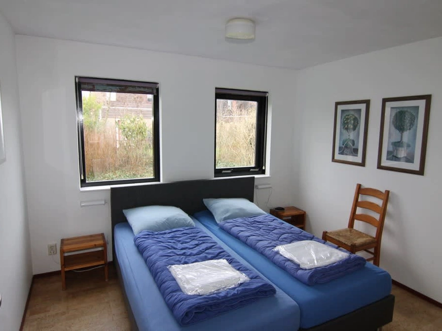 Das Wohnzimmer verfügt über eine Sitzecke mit Fernseher und einen Essbereich. Die halboffene Küche ist mit Geschirrspüler, Mikrowelle und Kühlschrank ausgestattet. Im Erdgeschoss befindet sich ein Schlafzimmer mit zwei Einzelbetten. Das Badezimmer verfügt über Dusche, Waschbecken und WC. Im Obergeschoss befindet sich ein weiteres Schlafzimmer mit zwei Einzelbetten. Der Bungalow bietet einen großzügigen Garten mit Terrasse und Gartenmöbeln.
