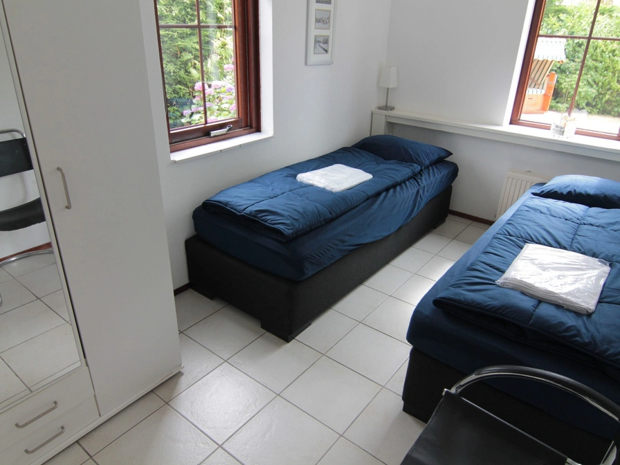 Eingangsbereich, gemütliches Wohnzimmer mit bequemer Sitzecke und Fernseher sowie ein schöner Essbereich. Die Küche ist praktisch ausgestattet mit Geschirrspüler, Mikrowelle und Kühlschrank. Im Erdgeschoss befinden sich ein Schlafzimmer mit zwei Einzelbetten und ein Badezimmer mit Dusche, Waschbecken und WC. Im Obergeschoss befinden sich zwei weitere Schlafzimmer, jeweils mit zwei Einzelbetten. Draußen bietet dieses freistehende Ferienhaus einen großzügigen Garten mit Terrasse, auf der Sie auf den bereitgestellten Gartenmöbeln entspannen können.