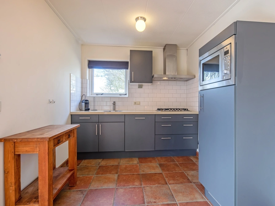 Das Wohnzimmer verfügt über eine Sitzecke mit Holzofen, TV, Radio/CD/DVD-Player. Es gibt auch einen Essbereich. Die offene Küche ist mit Spülmaschine, Kühl-/Gefrierschrank und Mikrowelle ausgestattet. Es gibt zwei Schlafzimmer, eines mit Doppelbett (160 x 200). Das andere Schlafzimmer hat ein Etagenbett. Es gibt ein Badezimmer mit Dusche, Waschbecken und Toilette. Dieses Ferienhaus verfügt über einen Garten mit einer Südterrasse.