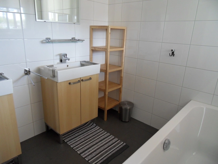 The living room with a sitting area is on the ground floor of this semi-detached holiday home. It contains a large corner sofa, an armchair and an LED TV. The open kitchen is equipped with a refrigerator, dishwasher and oven. On the ground floor are two bedrooms, each with a double bed. The bathroom has a bath, a shower and a double sink. There is a separate toilet. There are two spacious bedrooms on the top floor. Room 1 has a double bed and room 2 has a double bed and a single box-spring bed. A cot can also be placed in room 1. Upstairs is a second bathroom with shower, sink and toilet. There is a washing machine in the hallway. This holiday home has a green, south-facing garden with garden furniture.
