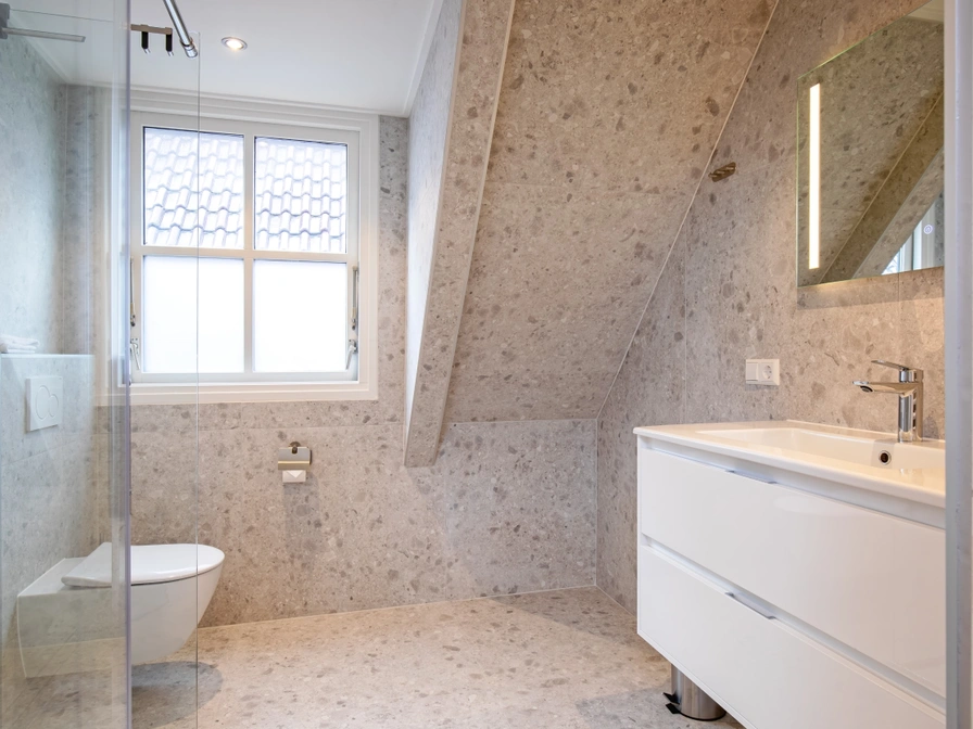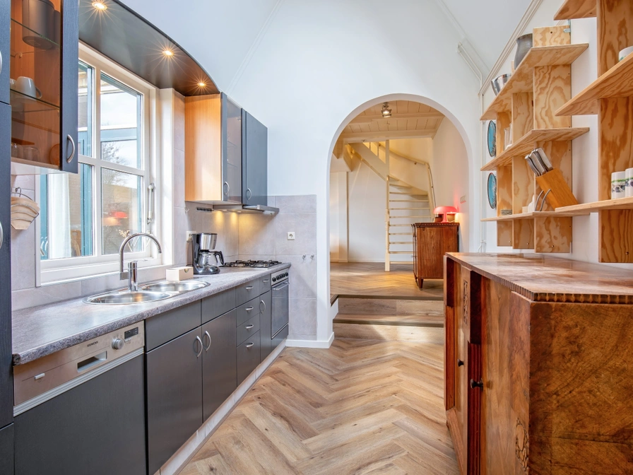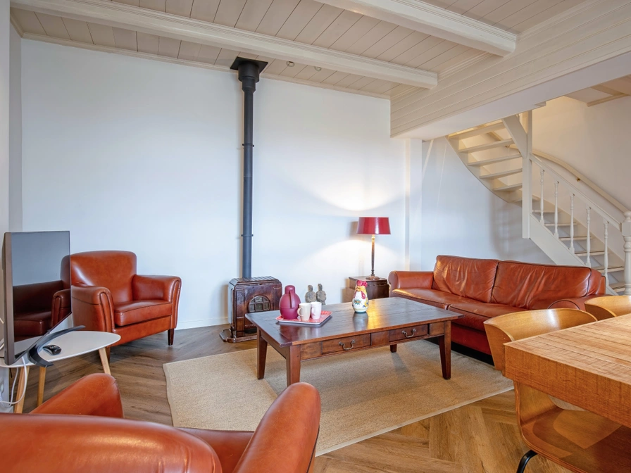 The spacious living room features a sitting area with a wood-burning stove (please bring your own wood), a TV, and a dining area. The kitchen is equipped with a refrigerator with freezer, microwave, oven, and dishwasher. Upstairs, there are two bedrooms, each with two single beds. The bathroom has a spacious walk-in shower. Het Achterom holiday home has a large, enclosed garden with two patios and a fireplace/grill. Garden furniture is provided. From January 2026, Het Achterom will be suitable for 6 people. The house will then have an additional living room, an additional bedroom on the ground floor, and a luxurious bathroom with a shower and toilet.
