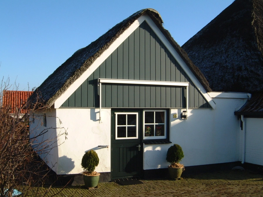 4 apartments and 1 bungalow Authentic thatched Texel farmhouse 1 km from the edge of the forest In the countryside between Den Hoorn and De Koog Play area with slide, sandpit and swings Large enclosed garden with chicken coop and goat meadow