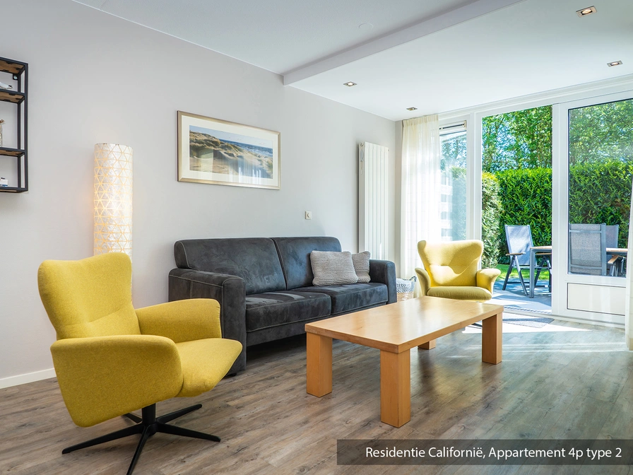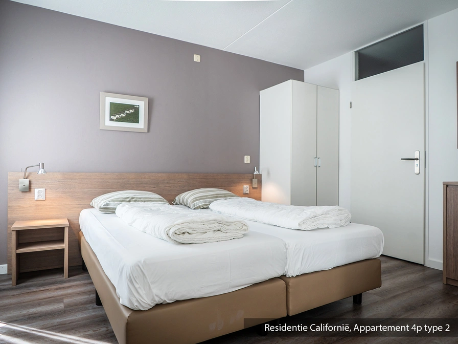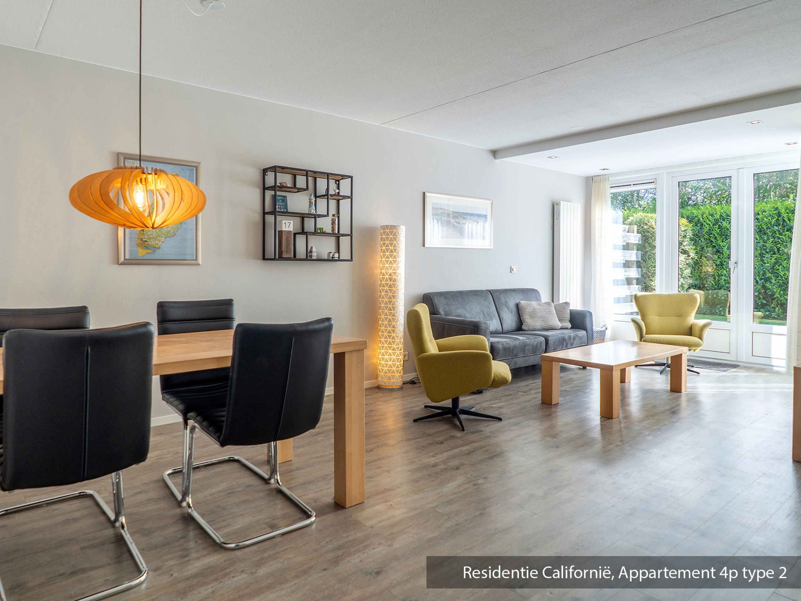 Residence Californië is a quietly located four-star apartment complex on the west side of Texel, near De Koog. The apartments are located on the edge of the forest area, which is part of the Duinen van Texel National Park. Several of the cycling and walking routes through this protected nature reserve start practically on the doorstep. Within 5 minutes you cycle to the vast North Sea beach (1.5 km). Seaside resort De Koog is about 3 kilometers away. In the cozy village center you will find plenty of shops, terraces, cafés and restaurants. In the vicinity of Californië are several attractions and places of interest, such as museums, riding stables and an indoor swimming paradise.