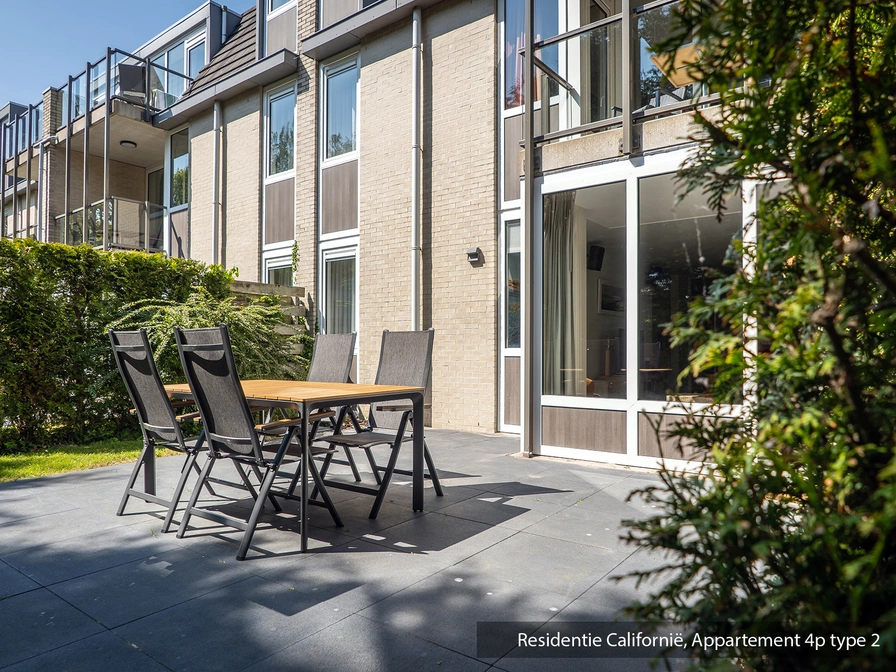 Residence Californië is a quietly located four-star apartment complex on the west side of Texel, near De Koog. The apartments are located on the edge of the forest area, which is part of the Duinen van Texel National Park. Several of the cycling and walking routes through this protected nature reserve start practically on the doorstep. Within 5 minutes you cycle to the vast North Sea beach (1.5 km). Seaside resort De Koog is about 3 kilometers away. In the cozy village center you will find plenty of shops, terraces, cafés and restaurants. In the vicinity of Californië are several attractions and places of interest, such as museums, riding stables and an indoor swimming paradise.