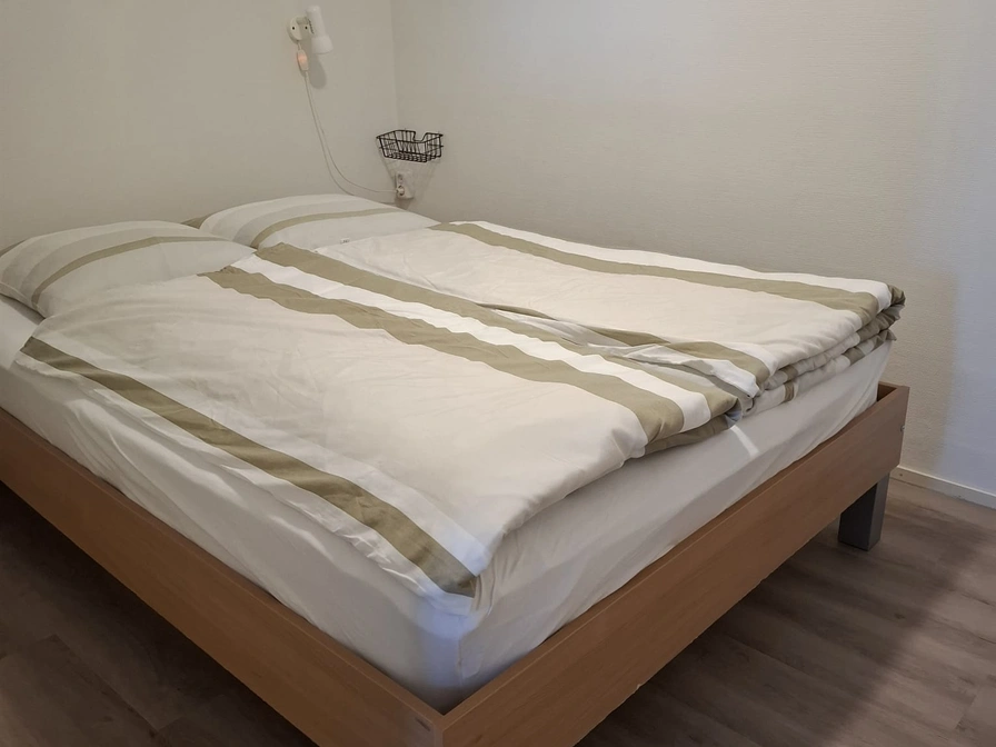 The living room has a sitting area with TV and a dining area. The open kitchen is equipped with a dishwasher, induction hob, combination microwave and refrigerator with freezer. There are three bedrooms, two of which have a double bed (140 x 200). The other bedroom has one single bed (90 x 200). One of the bedrooms (with a double bed) has a sink. All blankets are single. The bathroom has a shower. The toilet is separate. This apartment has a terrace with garden furniture. Electric bicycle charging point available.