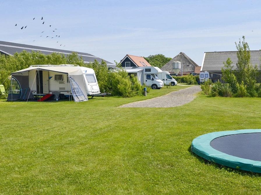 At Boerderijcamping Texel De Wamberg, there are 15 very spacious pitches (approximately 125 m² each), 7 of which are suitable for campervans (maximum 7.5 meters). All pitches have 10-amp electricity.
