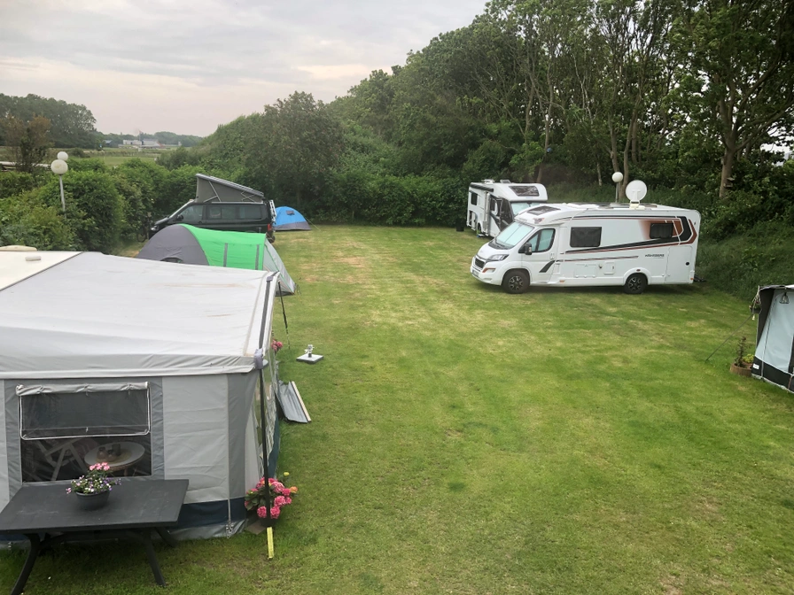 Our mini campsite consists of 1 field with 6 pitches. The pitches are equipped with electricity. The sanitary facilities consist of 3 toilets, 1 urinal, 2 showers and 3 sinks and are heated. There is also a washing machine.