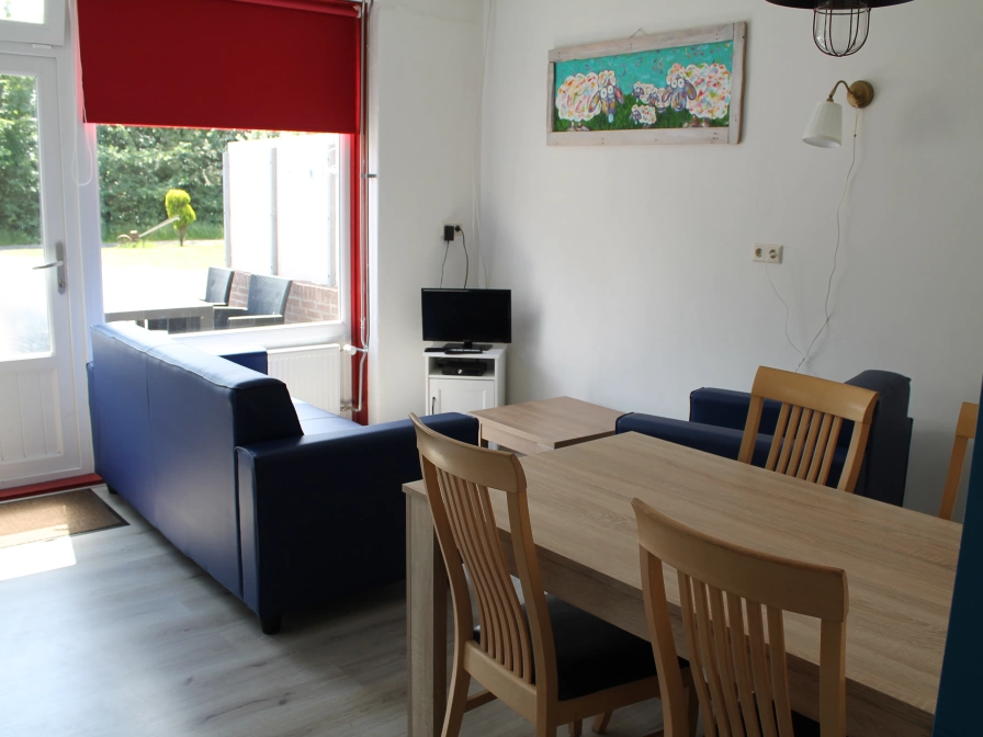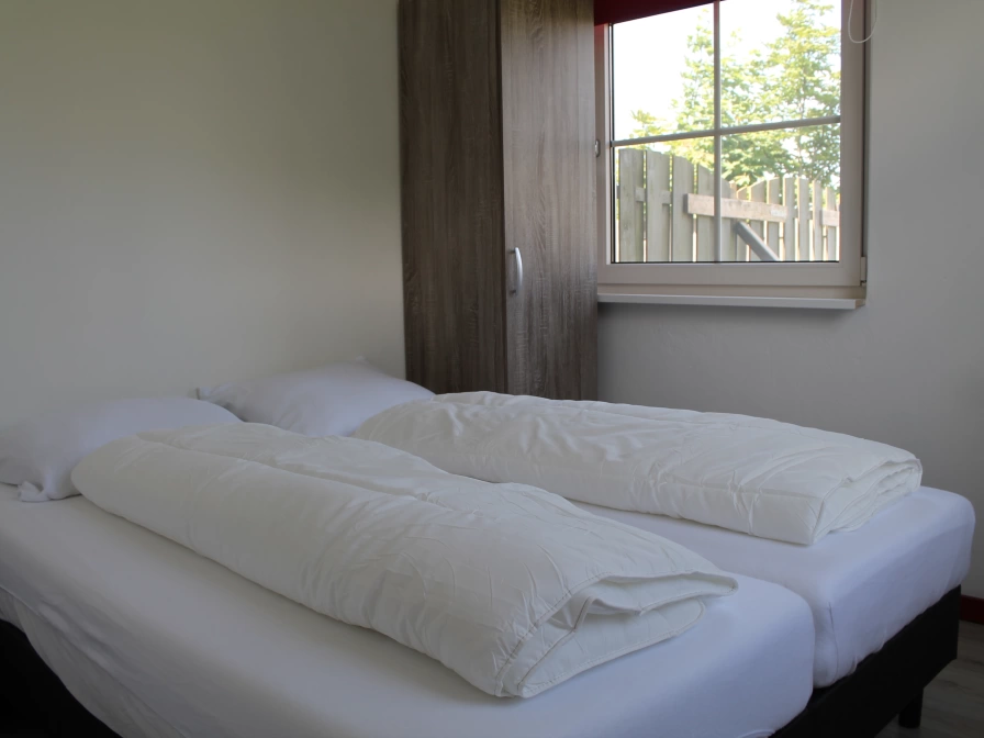 The living room of this semi-detached holiday home has a sitting area with TV and a dining area. The simple open kitchen is equipped with a gas stove, dishwasher, combination microwave and fridge with freezer compartment. There is also a kettle and a Senseo. There is a bedroom with two single box-spring beds (80 x 200). The bathroom has a shower and toilet. On the first floor are two single box-spring beds (90 x 200). This floor is accessible via a steep staircase. This holiday home has its own terrace with garden furniture.