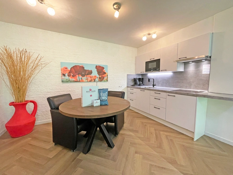The Texel forest area 'De Dennen' is located on the west coast of the island. Many walking and cycling routes run through this green area that borders the beach. Apartment hotel Bos en Duin is located on the edge of 'De Dennen', 10 minutes by bike from the beach and the lively seaside resort of De Koog. You live in one of the spacious family apartments for 2, 3 or 4 people. The houses are located on the ground, 1st or 2nd floor of this quietly located apartment building.