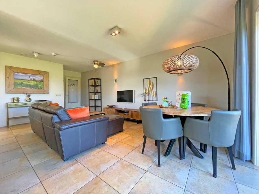 The living room has a sitting area with flat screen TV. There is a dining area. The open kitchen is equipped with a refrigerator, dishwasher, coffee maker, Nespresso, kettle and combination microwave. The bedroom has 2 single beds. The bathroom has a sink, bubble bath and separate rain shower. The toilet is separate. This apartment is located on the ground floor and has a southeast-facing terrace with unobstructed views over the Texel farmlands.