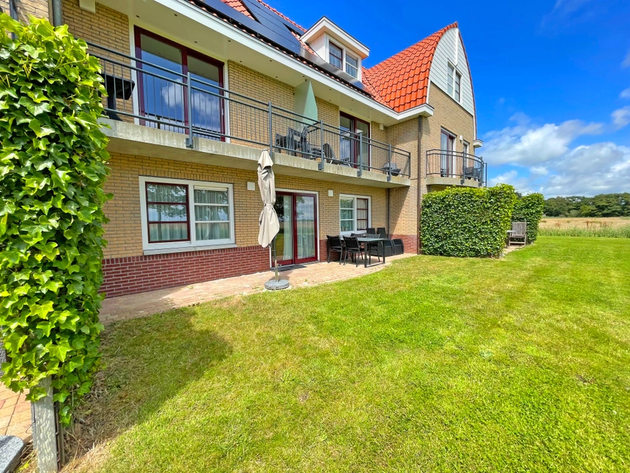 The living room has a sitting area with TV and a dining area. The open kitchen is equipped with a refrigerator, dishwasher, coffee maker, Nespresso, kettle and microwave. There are two bedrooms with 2 single beds each. The spacious bathroom has a shower with shower chair and a toilet with safety rails. A washing machine and dryer are available. This apartment is located on the ground floor and has a spacious terrace with garden furniture. The terrace faces southeast and offers an unobstructed view over the Texel countryside.