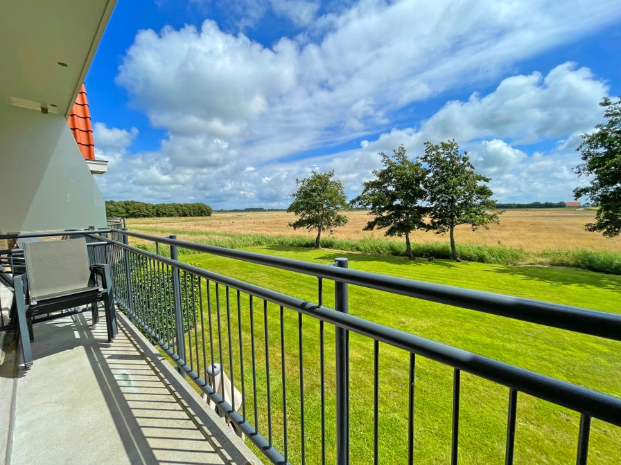 The living room has a sitting area with flat screen TV and a dining area. The kitchenette is equipped with 2 hotplates, refrigerator, coffee maker, Nespresso, kettle and microwave. The bathroom has a bath, shower and toilet. On the first floor there are two bedrooms, each with 2 single box-spring beds. There is a toilet on the floor. This beautiful 4-person maisonette on the first and second floor has a south-facing balcony that offers a beautiful view over the countryside.