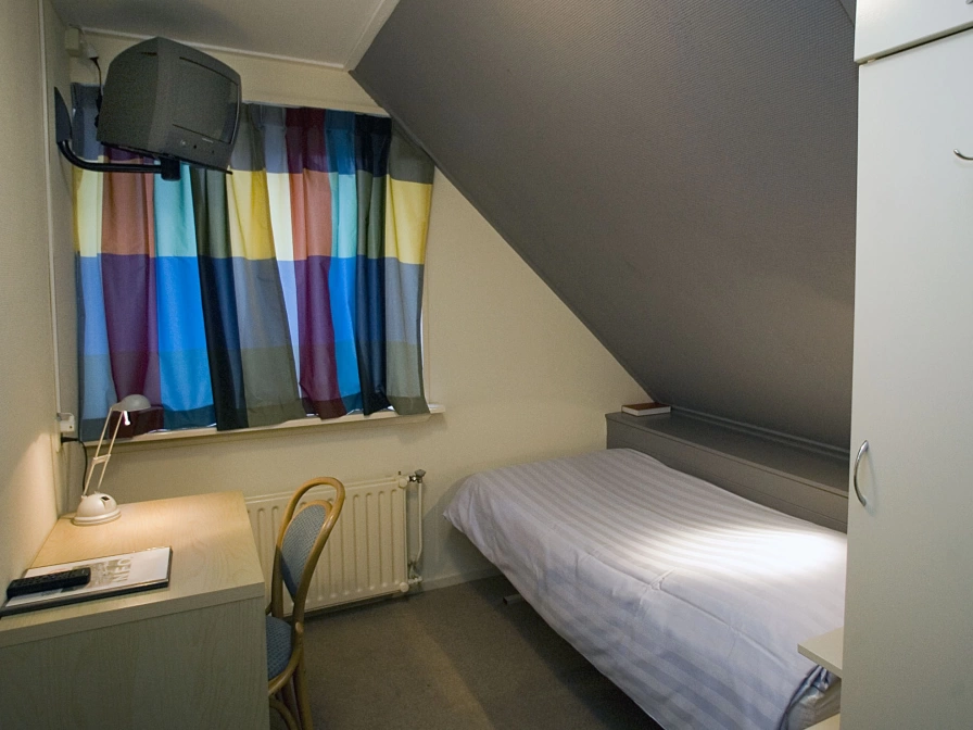 The room comes with 1 single bed and a TV. The bathroom has a shower and toilet.