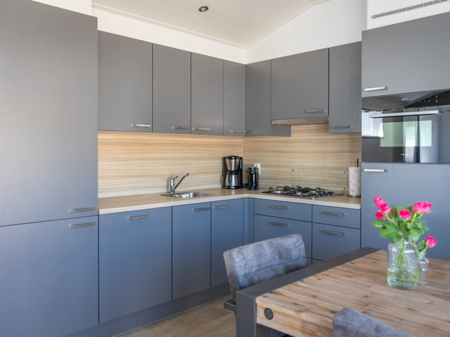 This chalet is close to the playing field. The kitchen is equipped with a 4-burner gas stove, dishwasher, fridge freezer, combination microwave, toaster, kettle, Nespresso and coffee maker. The living room has a sitting and dining area with TV. There are three bedrooms, two of which have a double box-spring bed with two mattresses (80 x 200). The other bedroom has a double box-spring bed with two mattresses (70 x 200). There is a bathroom with a spacious shower and sink. There is a separate toilet in the entrance. This chalet has a garden with a terrace off the living room. Garden furniture and a parasol are provided. Lockable outdoor storage for bicycles.