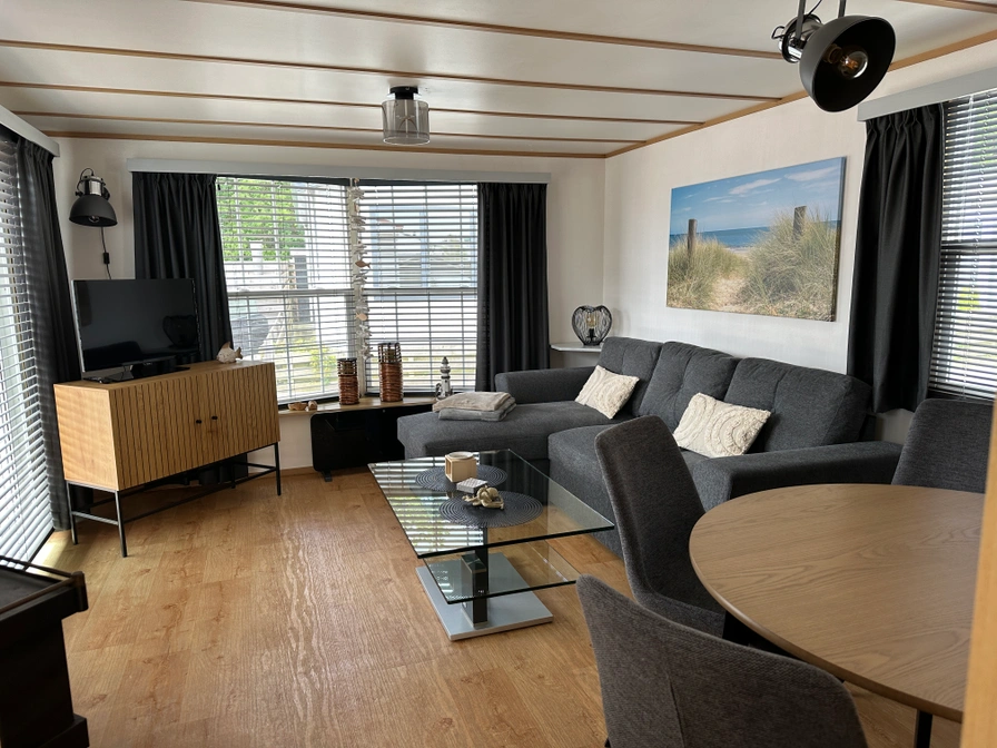There is satellite dish. The shed has a refrigerator, freezer and microwave. A parking space is available. Chaletpark Bregkoog has a launderette next to the reception and a bread roll service .. For children there is a play park with swings, climbing frames and an air trampoline. There is also a panna cage and table tennis table. The TV only has German channels. This is a ‘ZoTexels’ accommodation. 'ZoTexels' is a network of private accommodations where guests can savour the authentic flavour and hospitality of Texel.
