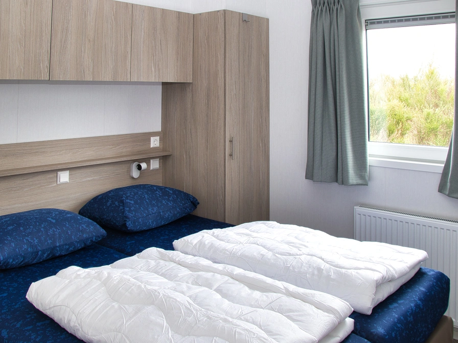 This chalet is located in a spacious and quiet area on the Akkerveld. The spacious, bright living room has a sitting area and a dining area. The open kitchen is fully equipped and includes a dishwasher, combination microwave, 4-burner stove, fridge with freezer, filter coffee maker and kettle. There are two bedrooms, one with 1 double bed (2 mattresses of 80 x 200 cm). The other bedroom has 1 single box-spring bed (80 x 200) and a bunk bed (80 x 200). All beds have single duvets and pillows. The bathroom has a shower, sink and toilet. There is an indoor storage room. In the garden there is a terrace with a garden table, patio chairs and a parasol.