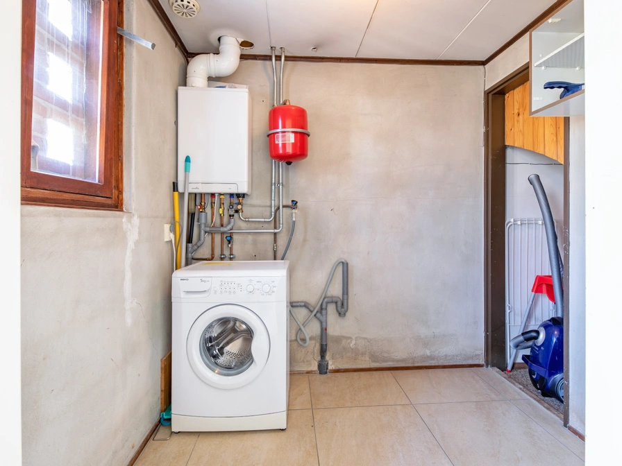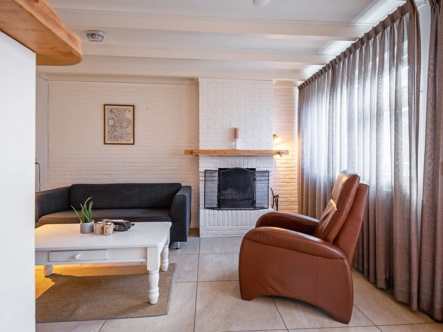 The living room has a sitting area with fireplace and a smart TV. The open kitchen is equipped with a dishwasher, fridge with freezer, microwave, a Nespresso and a coffee maker. The bathroom has a shower, sink and toilet. There is a washing machine in the indoor storage room. On the upper floor there are two bedrooms with 2 single box-spring beds each. Holiday home Pollux has a south-facing terrace and parking space for one car per booking.